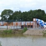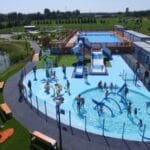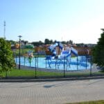 - kompleks dwóch zjeżdżalni wodnych z hamowniami (szeroka i rurowa o wys. do ok. 3,5 m); splash park z jedną małą zjeżdżalnią wodną dla dzieci w wieku 1-4 lat, stanowiący wodny plac zabaw, czyli miejsce dające rozrywkę i przestrzeń do odkrywania świata dla najmłodszych użytkowników, którzy mogą sprawdzić swoje siły korzystając z rozwijających zabawek;