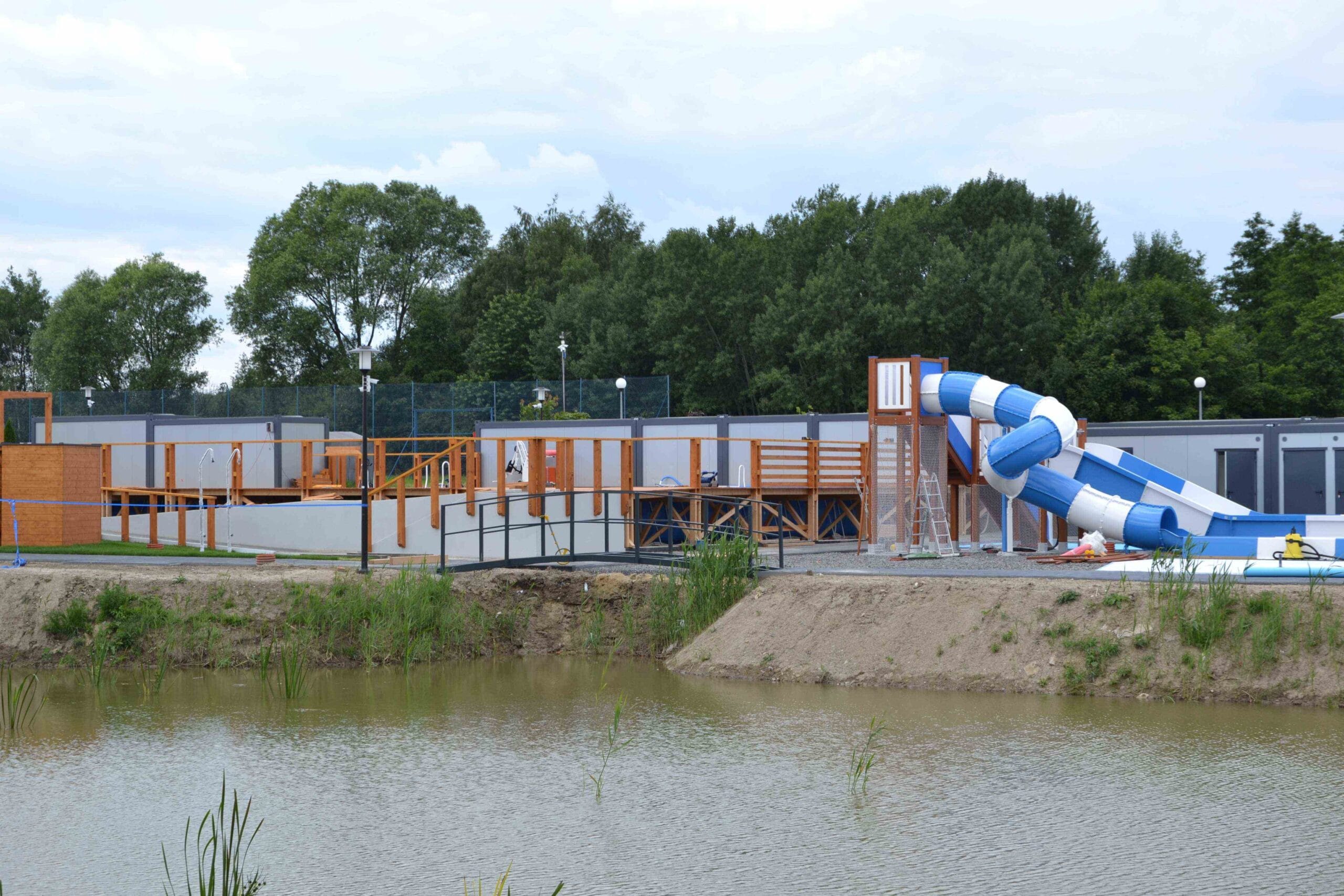 - kompleks dwóch zjeżdżalni wodnych z hamowniami (szeroka i rurowa o wys. do ok. 3,5 m); splash park z jedną małą zjeżdżalnią wodną dla dzieci w wieku 1-4 lat, stanowiący wodny plac zabaw, czyli miejsce dające rozrywkę i przestrzeń do odkrywania świata dla najmłodszych użytkowników, którzy mogą sprawdzić swoje siły korzystając z rozwijających zabawek;